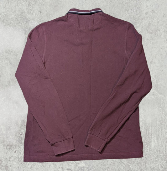 Fred Perry Men's Drakes Long Sleeve Polo T Shirt - Burgundy - Size Medium