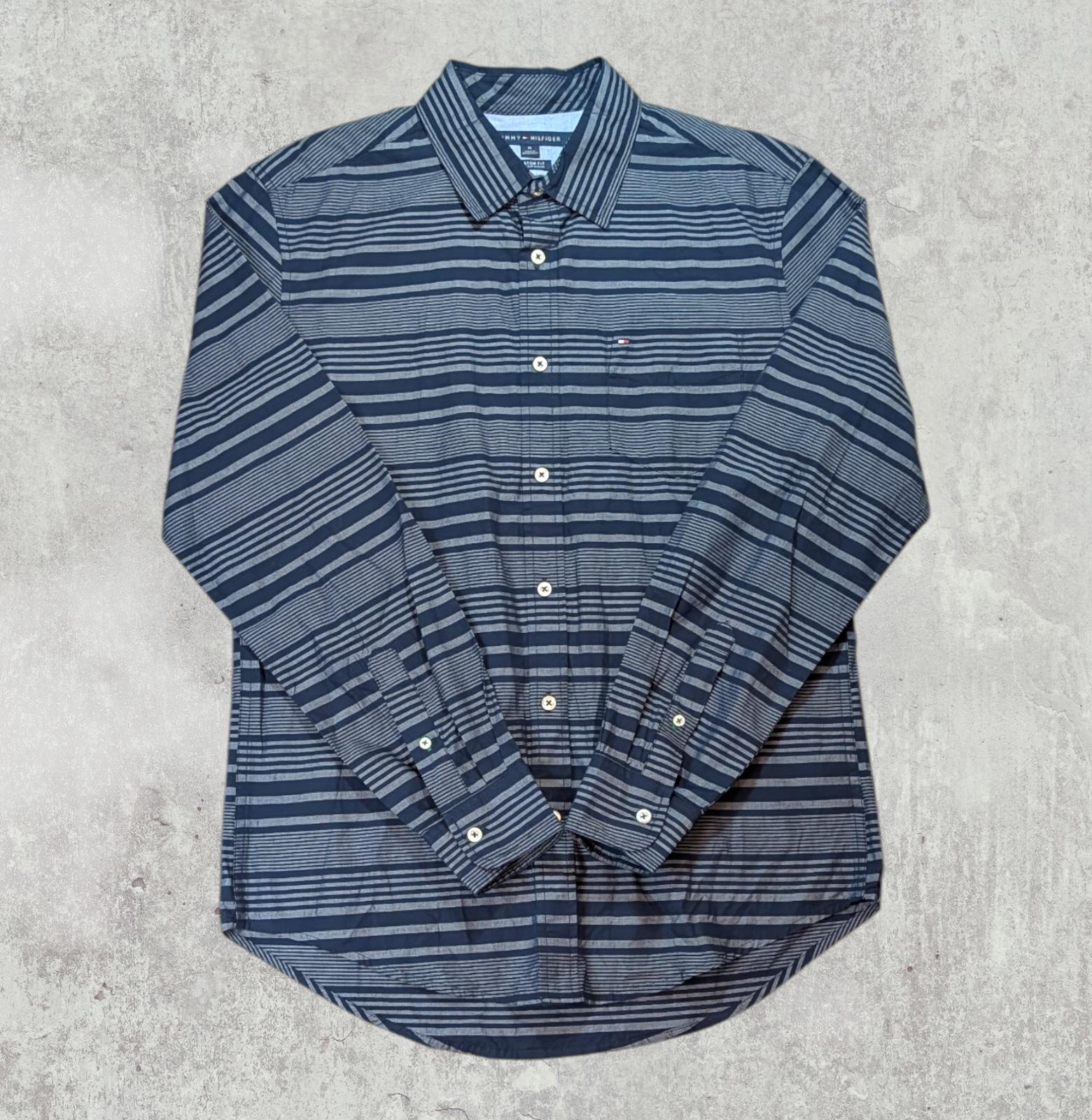 Tommy Hilfiger Men's Custom Fit Striped Shirt - Navy - Size Medium